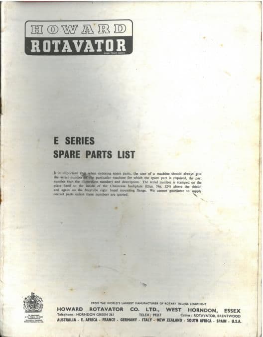 Howard Rotavator E Series Parts Manual 40 50 60 70 Models
