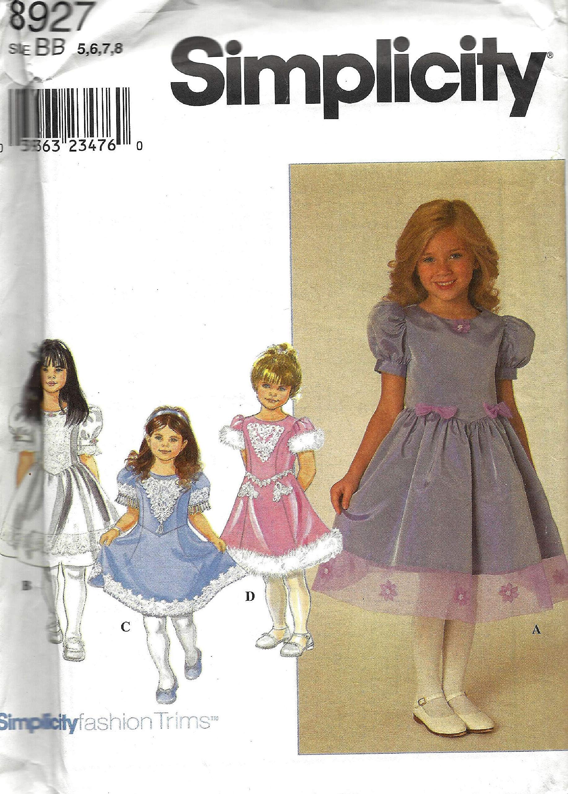 Amazon Com Simplicity Girls Dress Pattern 8927 In Size 5 6 7 8 Lined Dress With Variations With Fabric Trims Arts Crafts Sewing
